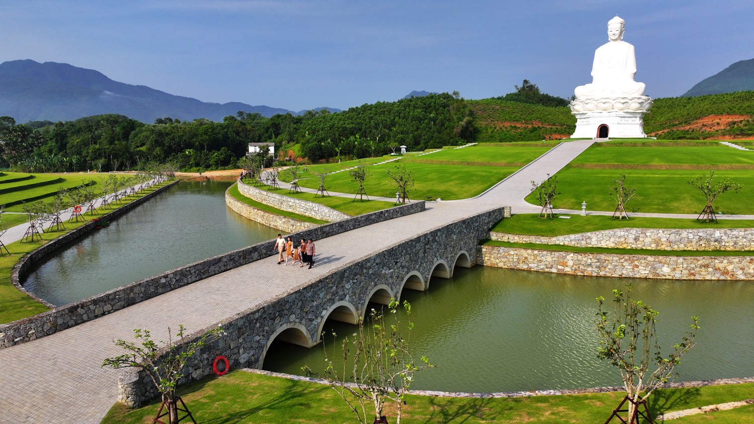 Nằm giữa 6 quả đồi tự nhiên, công viên được thiết kế theo quy luật ngũ hành, thể hiện sự cân bằng giữa trời và đất. Những bức tượng Phật uy nghi trên các đỉnh đồi không chỉ mang ý nghĩa bảo vệ, mà còn mang lại sự che chở, giúp con người cảm thấy gần gũi hơn với cõi tâm linh, từ đó tìm thấy sự an lòng và thanh thản.