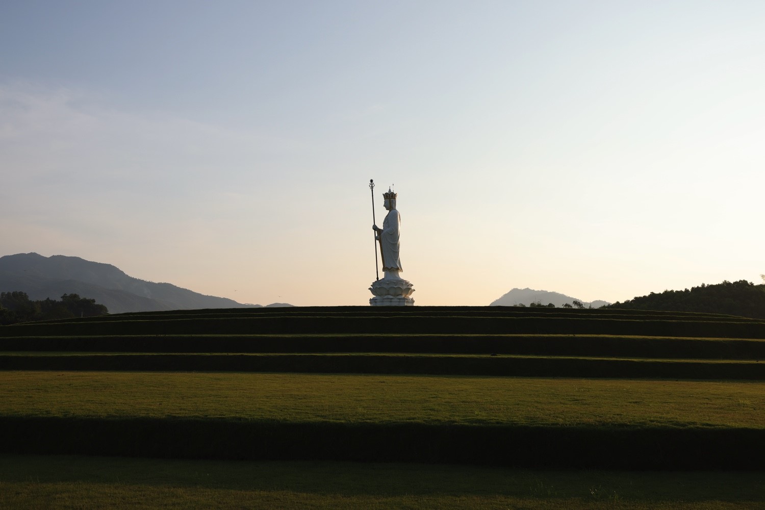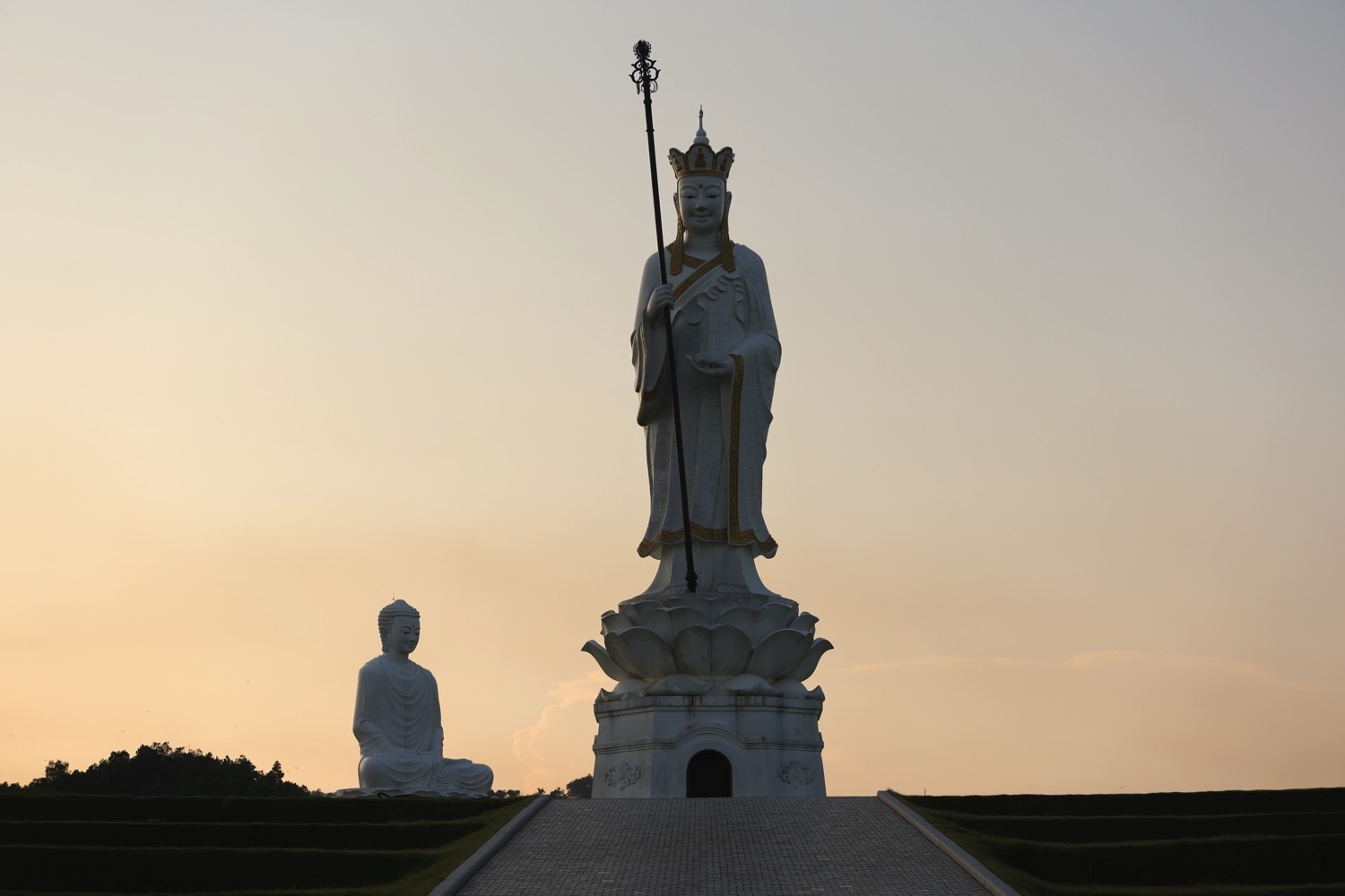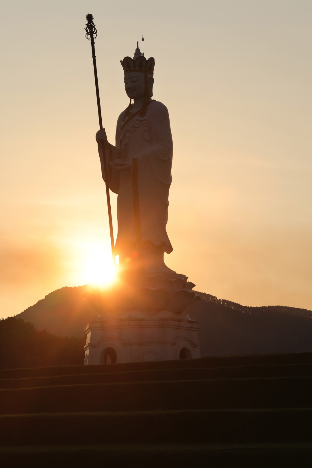 Tượng Địa Tạng Vương Bồ Tát khi hoàng hôn bôn xuống